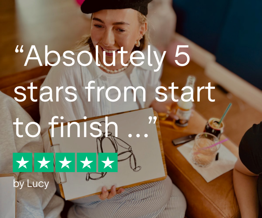 In both packages - the bride-to-be attends free, and your group will enjoy a 90-minute life drawing session with two bottles of bubbles and themed berets for a playful dress-up touch. All art materials are provided, along with engaging drawing exercises, games, and team challenges to keep everyone entertained.
